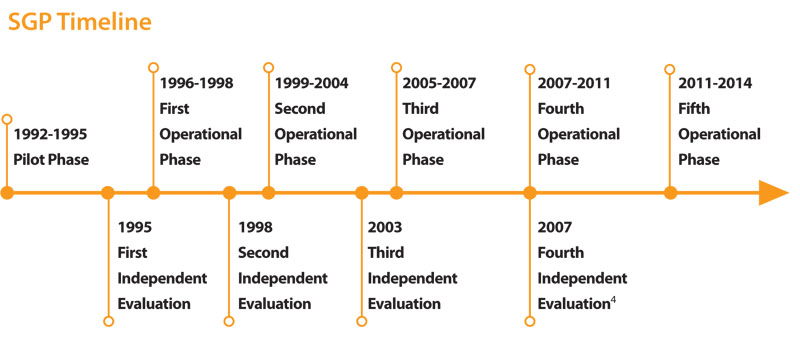 Currently, SGP is in its fifth operational Phase (2011-2014) and is leveraging the experiments, experiences, and achievements of the past two decades to further explore innovative and improved responses to the great variety of evolving needs at local and country levels. To date, the GEF Small Grants Programme has invested $450million and leveraged similar levels of co-financing supporting over 14,500 community based projects in over 125 countries.